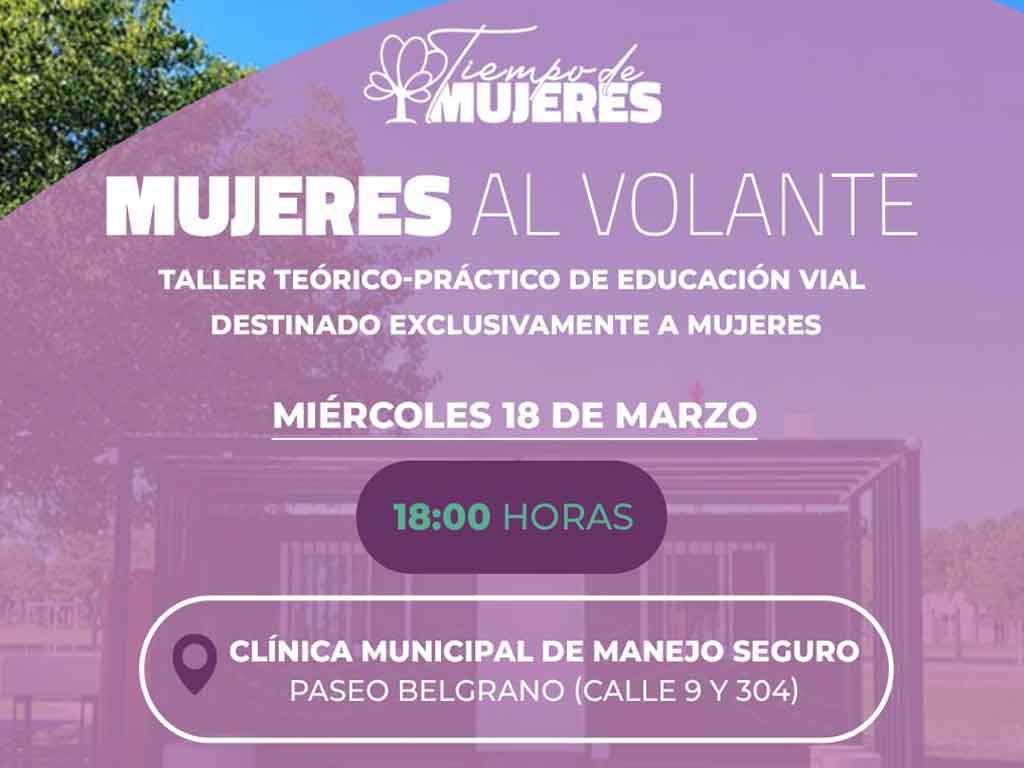 Siguiendo con la agenda planificada por el Mes de la Mujer, la Municipalidad de General Pico llevará adelante el miércoles 18 una jornada de capacitación integral denominada “Mujeres al volante”. La misma, libre y gratuita, se desarrollará en la Clínica Municipal de Manejo Seguro, ubicada en el Paseo Belgrano, en calles 9 y 304.
