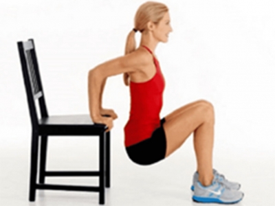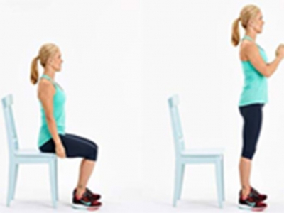 Sentadillas con silla: sentarse lento y subir más rápido (refuerzo en fase excéntrica)