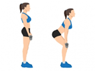 Peso muerto rumano: Flexiona las caderas manteniendo la espalda recta, desliza pesas cerca del cuerpo.