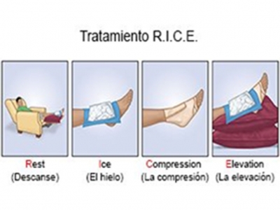 Protocolo RICE (Reposo, Hielo, Compresión y Elevación).