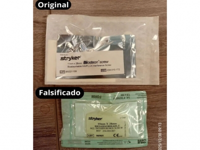 Dicho tornillo es producido por la firma Stryker Corporation, que se encuentra registrada ante ANMAT bajo el PM 594-139. Luego de la inspección, se exhibió la muestra recolectada ante la responsable técnica de dicha empresa, quien afirmó que se trataba de un producto falsificado.