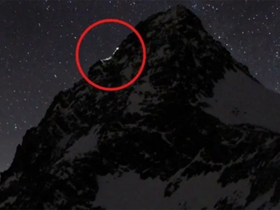 Su figura iluminada por una antorcha aparece en imágenes de una cámara web, mientras descendía de la cumbre.
