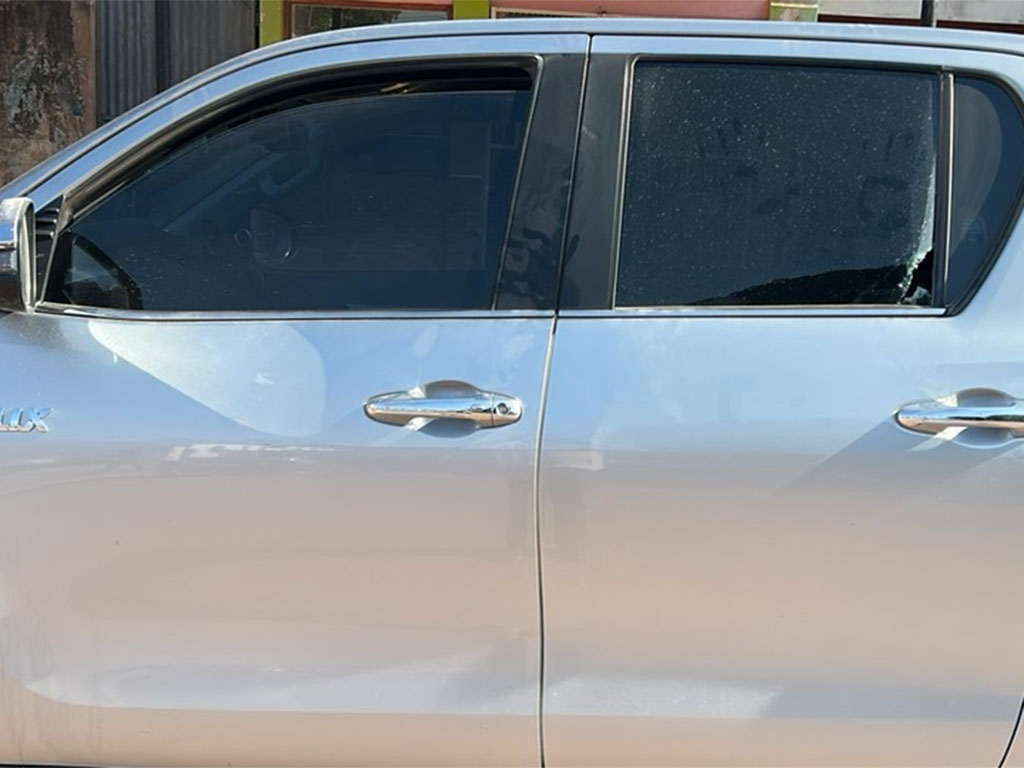 En el escrito se señaló que “de un momento a otro sufrió un impacto de bala en la ventana trasera izquierda del vehículo, haciendo notar que tal impacto ocasionó la rotura total del vidrio de la ventana”.