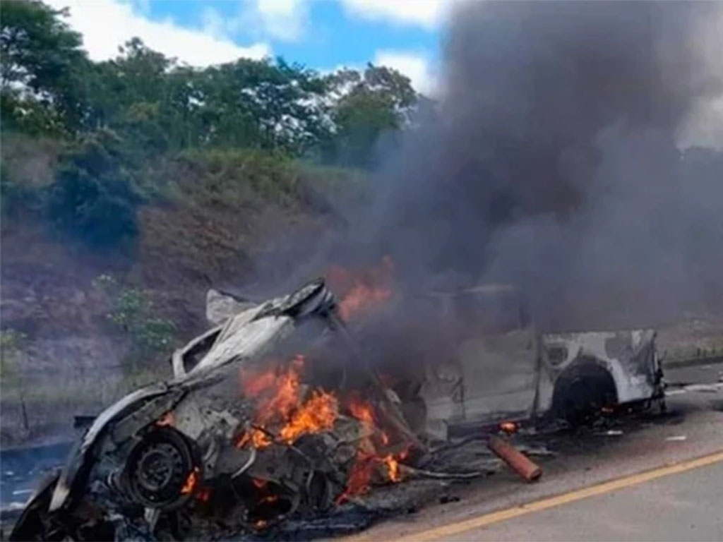 El siniestro involucró a una camioneta Chevrolet S10 y a un utilitario Fiat Dobló que, por causas que aún intenta establecer la Policía Federal de Caminos (PRF), chocaron de frente y se incendiaron por completo de manera inmediata.