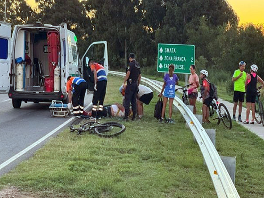 Tras el impacto, el camión continuó su marcha sin detenerse y avanzó en dirección a la rotonda. Los ciclistas quedaron tendidos sobre la ruta hasta la llegada de los primeros auxilios.