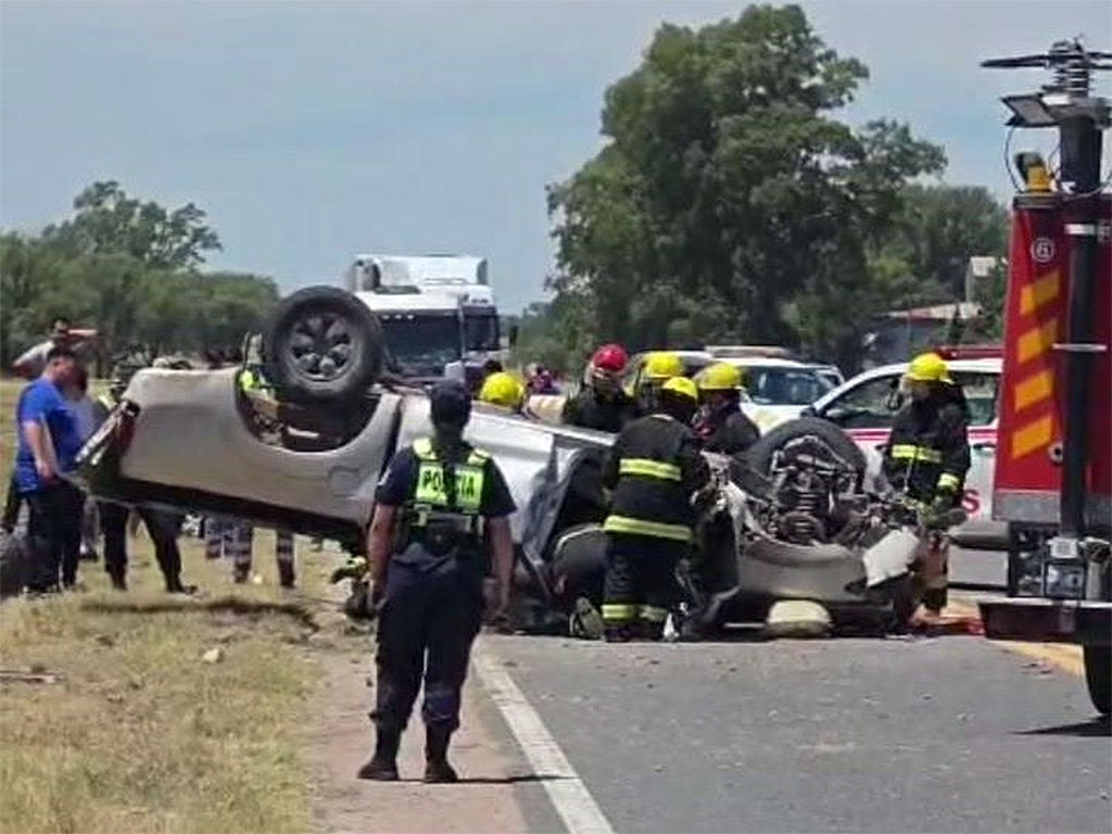 Una camioneta Toyota Hilux volcó pasado el mediodía de este martes sobre la ruta nacional 5, en cercanías del acceso principal a la localidad de Anguil.