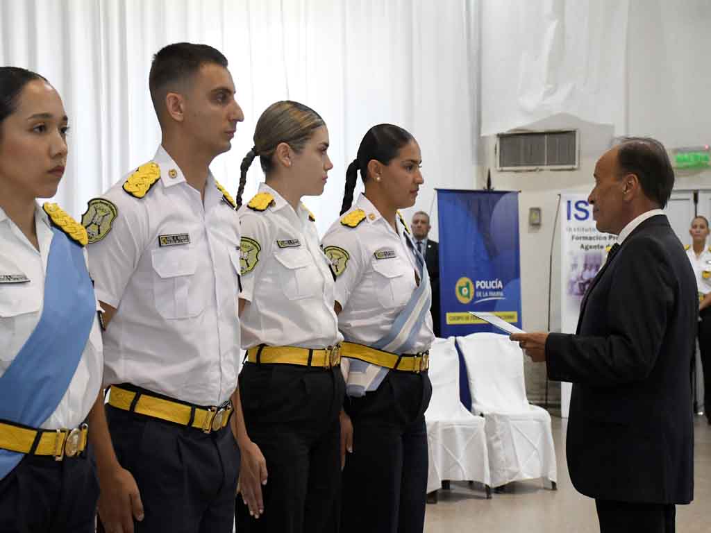 Durante la ceremonia participaron autoridades del Ministerio de Seguridad y Justicia, la Jefatura de Policía, equipos de formación, familiares y allegados que acompañaron a las y los flamantes agentes en este momento trascendental de su trayectoria profesional.