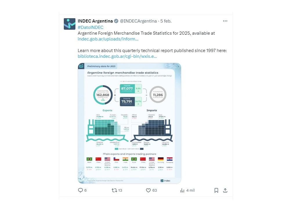 En un desliz mío por un momento pensé que alguien le pudo haber recriminado la intención de publicar documentación del INDEC en inglés, misma que ya estaba escrita y se sacó al público luego de su renuncia el día 05/02/2.026 -"Argentine Foreign Trade Statistic..."-, y que parece que va en contra de las regulaciones de idioma para actos administrativos, judiciales y educativos de Argentina; pero me sacudí un poco y pensé "Bah... se lo escribió el F.M.I. antes del "acuerdo" con Estados Unidos... que importa".