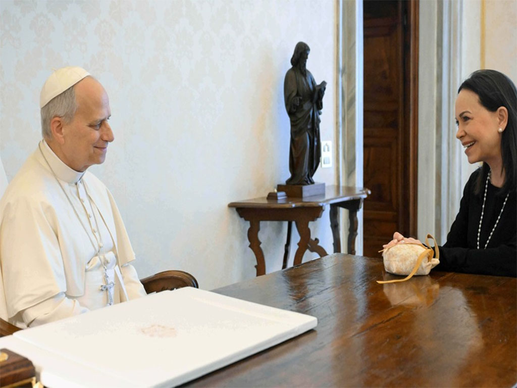El Papa León XIV recibió el lunes la líder opositora venezolana y premio Nobel de la Paz, María Corina Machado, en una audiencia privada, según informó la oficina de prensa del Vaticano.