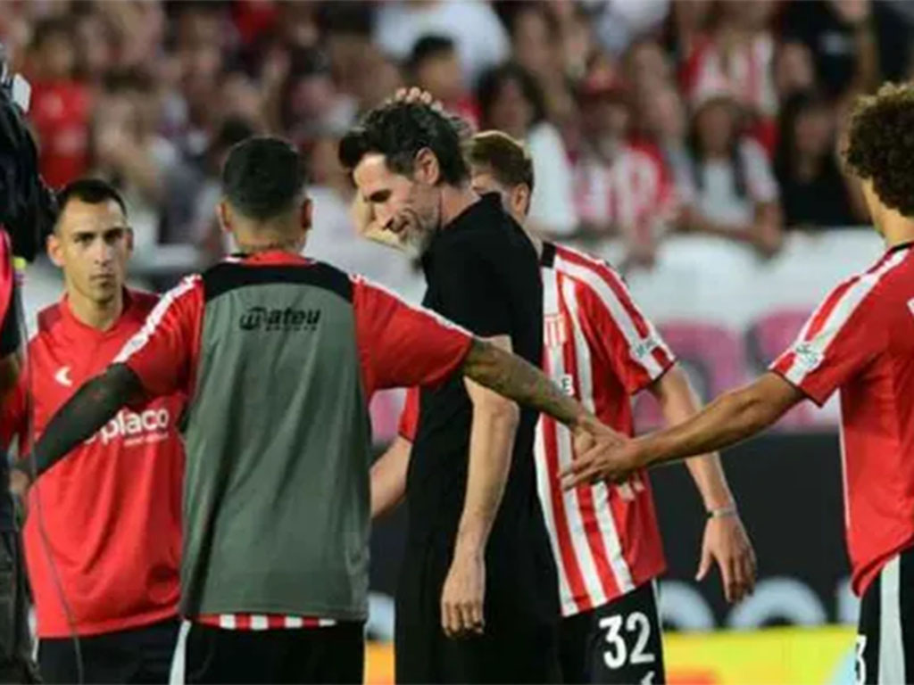 Los futbolistas también participaron del reconocimiento en la antesala del partido, con una ronda que tuvo en su centro al ahora extécnico de Estudiantes, que seguramente seguirá con su exitosa carrera y sumando galardones a la vitrina personal.