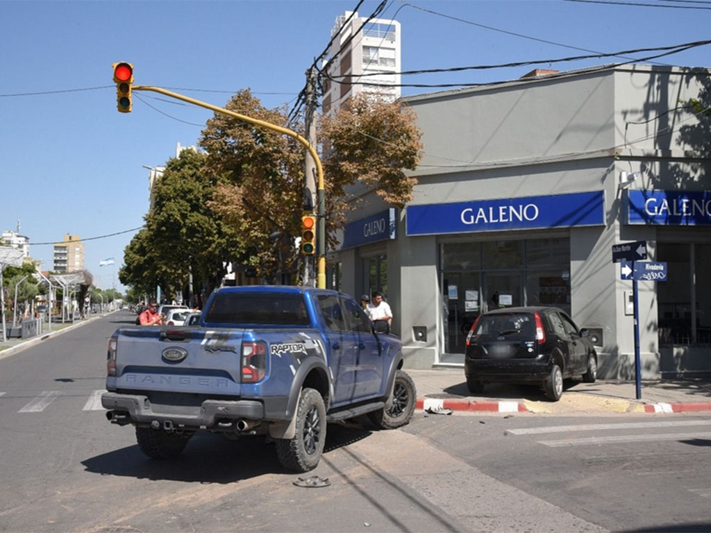 Las escena resultó muy llamativa porque el incidente vial se produjo en una esquina con semáforo, como la avenida San Martín y Rivadavia, y porque un auto terminó a milímetros de la vidriera de un local comercial que en esos momentos atendía al público.