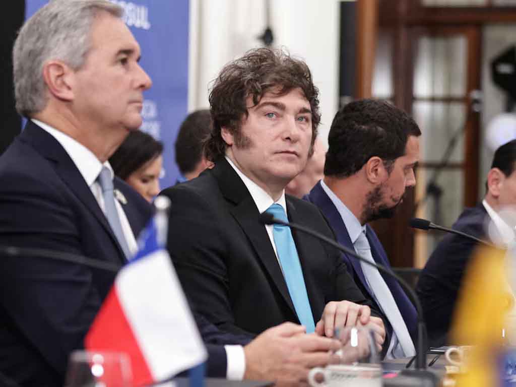 Milei sostuvo que el Mercosur no cumplió sus objetivos fundacionales. “Nació con una misión clara de promover el comercio, aumentar la prosperidad, integrar mercados y elevar la competitividad de nuestras sociedades. Y ninguno de esos objetivos centrales se cumplió”, expresó.