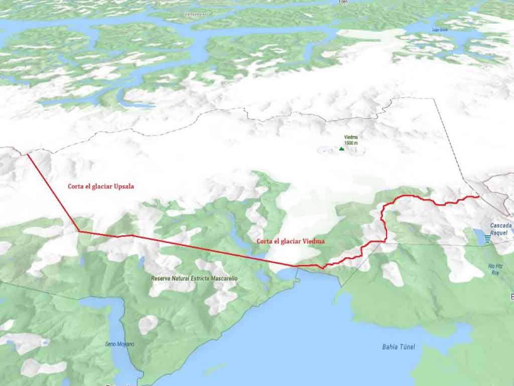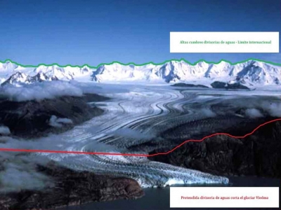 Para más claridad, se adjuntan imágenes con el área del Parque Nacional Los Glaciares -de soberanía Argentina- pretendida por Chile.