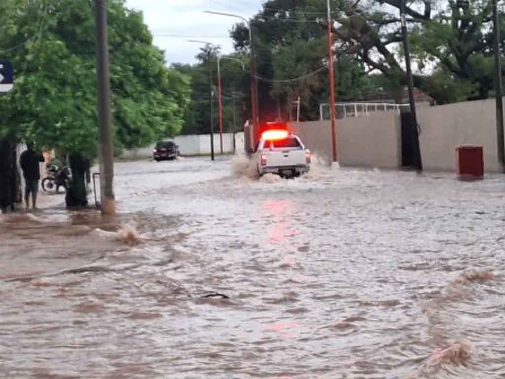 La magnitud del fenómeno provocó anegamientos casi inmediatos en distintos sectores urbanos. En puntos críticos, como la intersección de las calles Buenos Aires y Juana Azurduy, la fuerza del agua fue tal, que colapsó un canal subterráneo y destruyó por completo el pavimento.