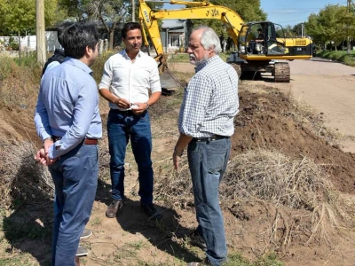 El ministro de Obras y Servicios Públicos, Alfredo Intronati, junto al administrador de la Administración Provincial del Agua (APA), Fabricio González Martín, recorrieron en la localidad de Lonquimay los trabajos de limpieza de canales pluviales, acompañados por el intendente Manuel Feito.