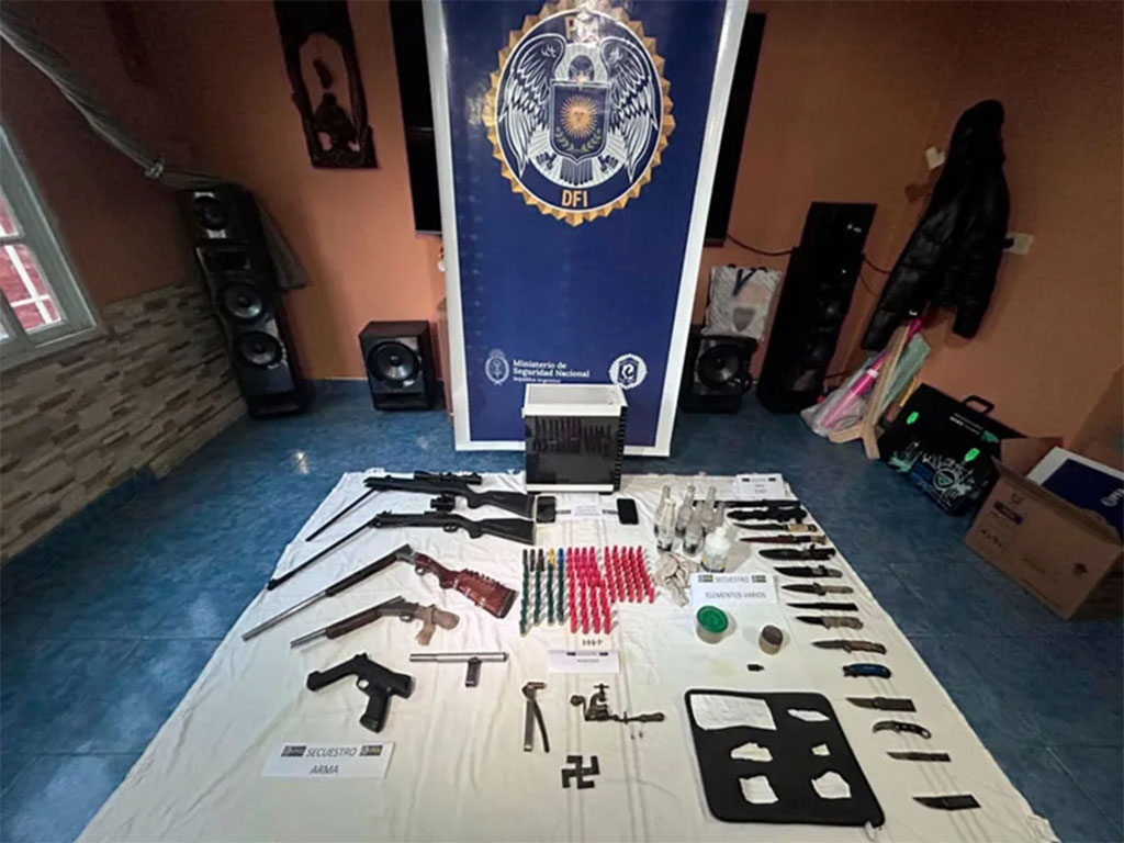 El procedimiento fue realizado por agentes del Departamento Federal de Investigaciones de la Policía Federal Argentina, en una causa que tramita en la Justicia Federal de General Roca por intimidación pública, actos discriminatorios y tenencia ilegal de armas.