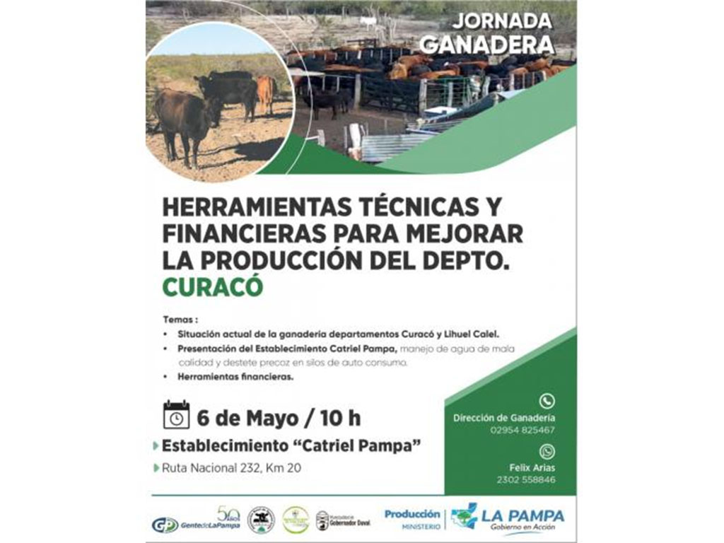 Para mayor información e inscripción, comunicarse con la Dirección de Ganadería: 02954 – 825467, o vía WhatsApp: 2302 - 558846 (Felix Arias).