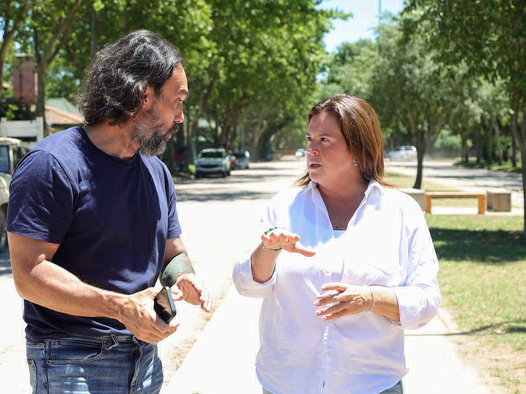 La intendenta Fernanda Alonso recorrió este miércoles las obras de asfalto y mejoramiento vial que se están ejecutando en la intersección de la Avenida San Martín y calle 115, donde desde este miércoles comenzó a funcionar la nueva semaforización.