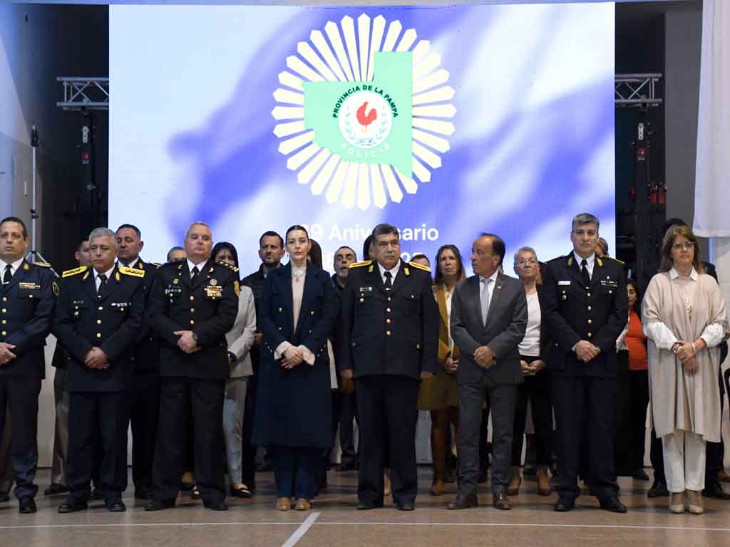 La Policía de La Pampa celebró este sábado su 139° aniversario en el salón del Círculo de Suboficiales y Agentes, en una ceremonia que reunió a autoridades provinciales, integrantes de la plana mayor policial, representantes de los tres poderes del Estado y familiares del personal.