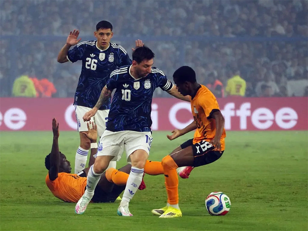 El elenco nacional se impuso con goles del delantero Julián Álvarez, a los tres minutos del primer tiempo, el astro argentino Lionel Messi, en 43 de la primera parte, el defensor Nicolás Otamendi de penal, en su despedida de la Selección, y a los cuatro minutos de la segunda etapa, el defensor Dominic Chanda, en contra, cuando iban 22 minutos del complemento, y el mediocampista Valentín Barco, en el tercer minuto de descuento.