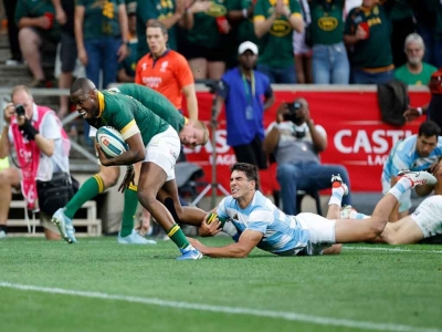 Con un estadio que era un hervidero, el partido comenzó con las pulsaciones a mil. Sudáfrica salió a marcar el terreno de entrada y se metió en las 22 tardas de los argentinos. Generó una infracción, buscó el line y luego de otro penal pidieron el primer scrum, la gran fortaleza de los Springboks. Los Pumas defendían como podían, pero no pudieron aguantarlos y Fassi conquistó el primer try a los 7 minutos que con la conversión de Hendrikse puso el 7 a 0.