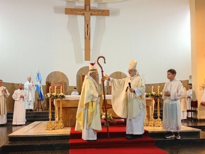 La ceremonia de toma de posesión se realizó ante una Iglesia Catedral colmada. El Arzobispo Monseñor Fray Carlos Azpiroz Costa, a cargo de la arquidiócesis de Bahía Blanca, oficializó el nombramiento de Martín al frente de la Diócesis santarroseña.