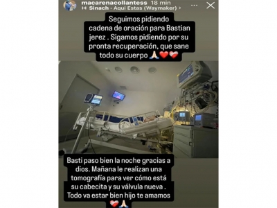 A través de su cuenta de Instagram, Macarena Collantes, mamá del niño, informó que este lunes al mediodía Bastián va a ingresar de nuevo al quirófano, al constatar que su válvula “no estaría drenando lo suficiente”.