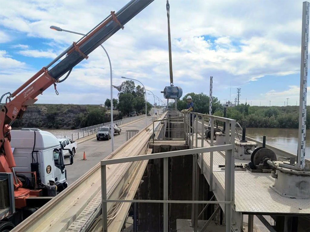 La intervención incluyó la interrupción temporal y alternada del tránsito vehicular en ambos sentidos, con el objetivo de permitir las tareas de desmontaje y control de cuatro motores eléctricos, correspondientes a las compuertas del puente dique.