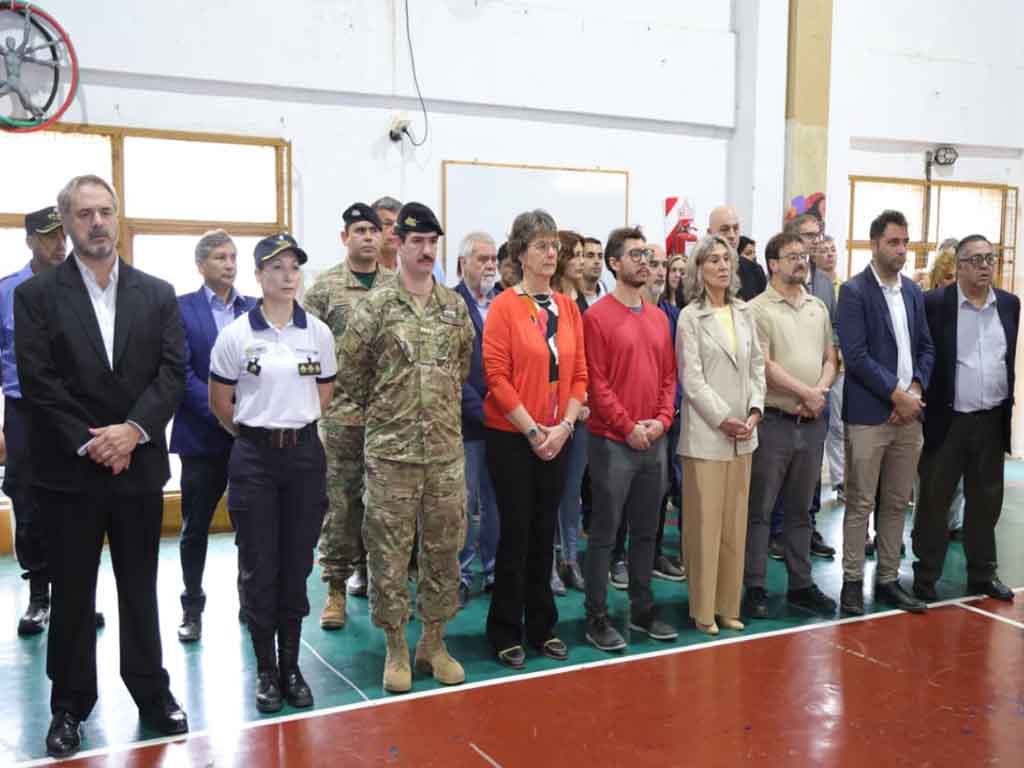 Estuvieron el secretario de Gobierno, Nicolás Mendoza; la vicegobernadora, Alicia Mayoral; autoridades de fuerzas policiales y de seguridad, funcionarias y funcionarios municipales y provinciales, directivos de establecimientos educativos, público en general.