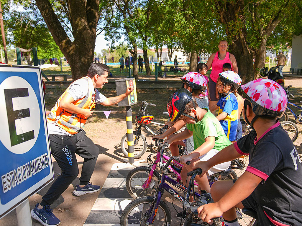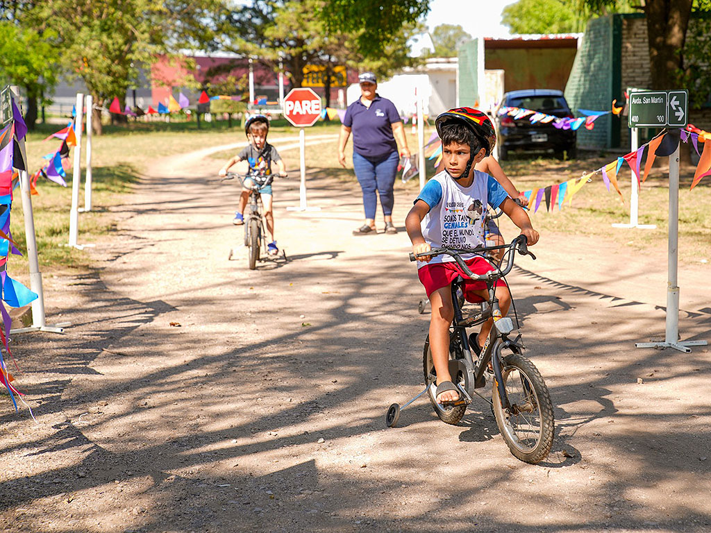 Allí se desplegó un parque vial por el que transitaron los pequeños, donde en cada esquina del circuito recibieron información y respondieron preguntas vinculadas al recorrido. Asimismo, participaron de juegos orientados a incorporar saberes, los que más tarde socializaron entre sí y con los demás grupos.