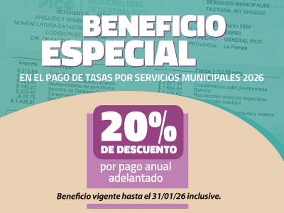 El municipio local informó que hasta el 31 de enero podrán abonar los 12 períodos de las Tasas por Servicios Municipales del año 2026 con ...
