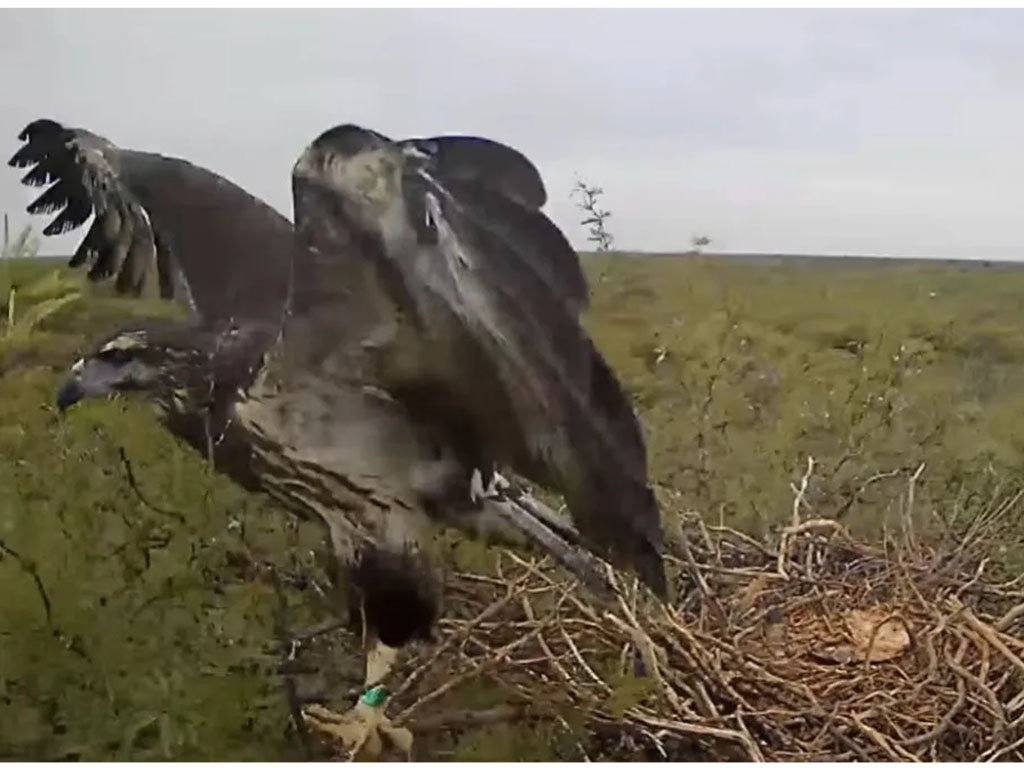 Actualmente, el pichón atraviesa una etapa clave de desarrollo. Ya ejercita sus alas frente a los fuertes vientos de la región y se prepara para su primer vuelo, mientras continúa recibiendo alimento de sus padres, principalmente serpientes y armadillos. Antes de iniciar la transmisión, los investigadores colocaron al pichón un anillo metálico que permitirá identificarlo cuando abandone el nido y pueda ser registrado nuevamente en la naturaleza.
