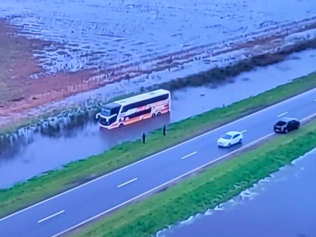 “Una ráfaga nos sacó de la ruta”, relató el chofer, que junto a unos 40 pasajeros debió ser rescatado en lancha por personal de emergencia. Todos fueron trasladados a otro colectivo para continuar viaje hacia la localidad de América, en el oeste bonaerense, sin registrarse heridos ni víctimas fatales, informó la agencia NA.