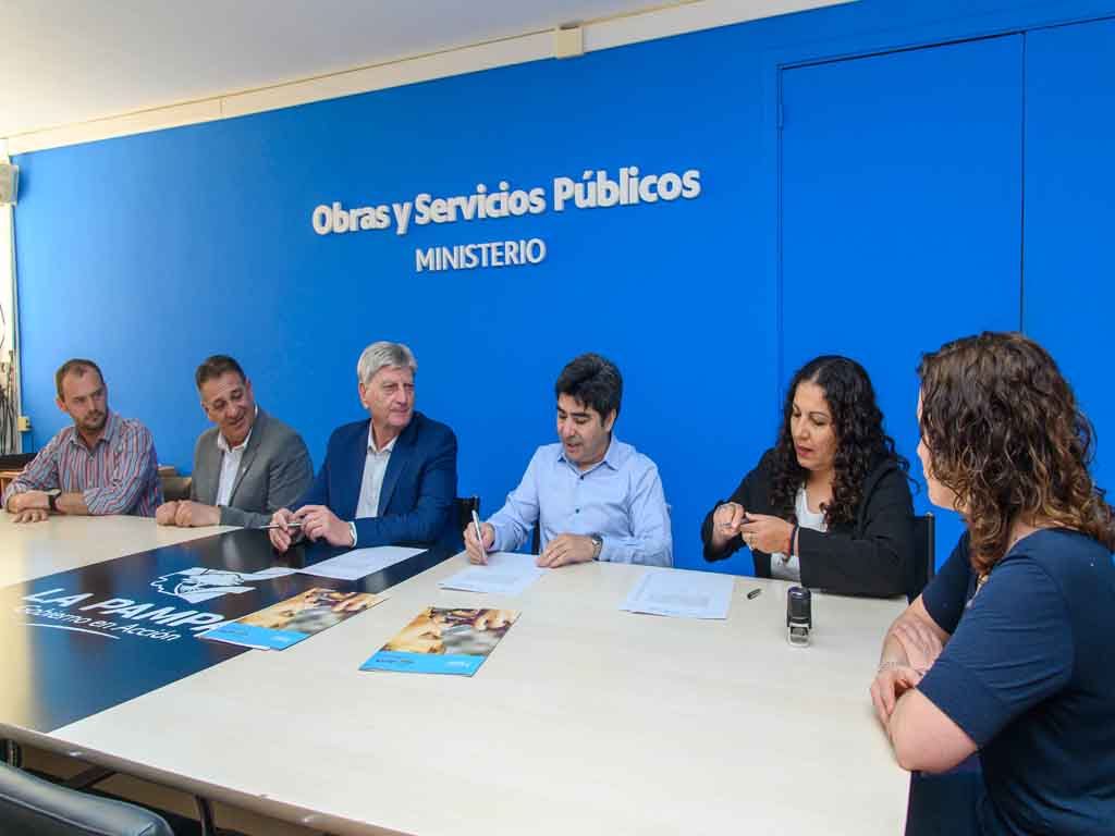El acto se realizó días atrás en Casa de Gobierno, y contó con la presencia del ministro de Gobierno y Asuntos Municipales, Pascual Fernández; el administrador provincial del Agua, Fabricio González; la subsecretaria de Obras y Servicios Públicos, Antonela Dosso; la intendenta de Maisonnave, Rodecia Bernelli; y el intendente de Alpachiri, Iván Fuhr.