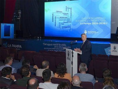 El gobernador de La Pampa, Sergio Ziliotto, encabezó este miércoles en el Centro Cultural Provincial Medasur de Santa Rosa la presentación oficial del Plan de Desarrollo Económico y Productivo (PDEP) 2026–2030, ante un auditorio colmado por representantes de todos los sectores vinculados a la actividad económica de la Provincia.