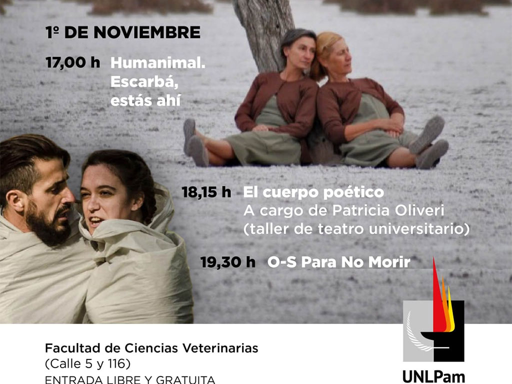 El programa indica que Humanimal se pondrá en escena a las 17, a las 18:15 El Cuerpo Poético del teatro universitario y a las 19:30 OS para no morir.